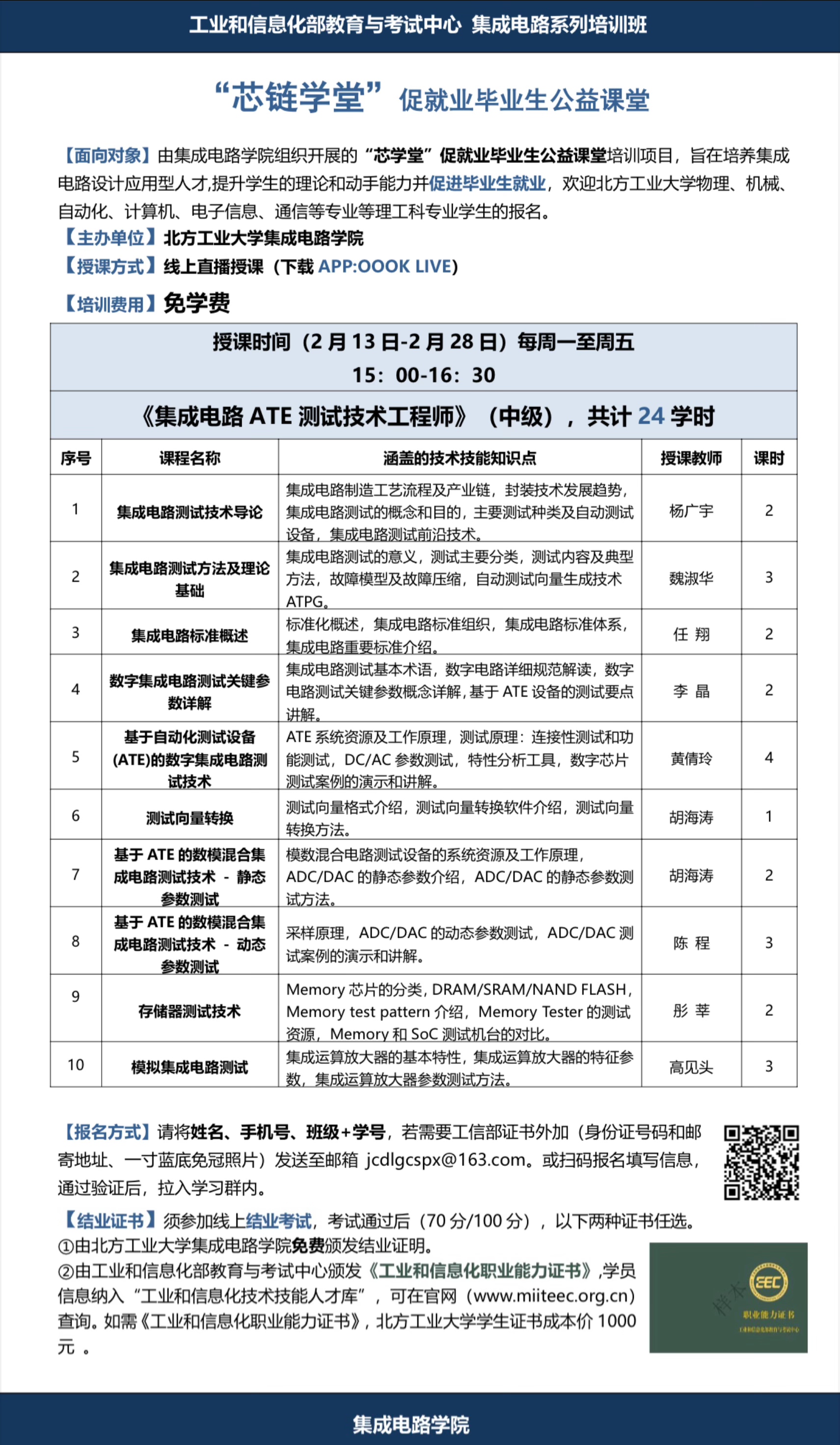 2月13日-2月28日,15:00-16:30《集成电路ATE测试技术工程师》(中级)。