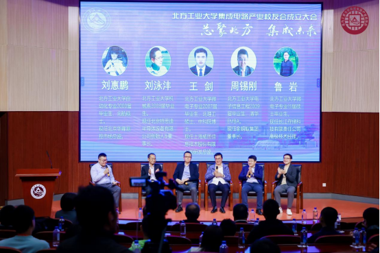 大会最后的环节也是圆桌论坛。本届圆桌论坛请到了来自设计、制造、封测、应用、设备各个环节的精英校友们,他们分别是:北京华峰测控市场总监刘惠鹏(96级电控)、北京特思迪半导体设备有限公司董事长刘泳沣(99级机械)、上海威固信息技术股份有限公司研发总监王剑(03级微电)、金蚂蚁集团董事长周锡刚(05级电信)、长江存储科技有限责任公司高级技术经理鲁岩(08级微电)。论坛在袁立栋会长的主持下,针对集成电路产业现状进行了交流与分享,并对未来机遇与挑战进行了展望与分析。各位嘉宾各抒己见,从不同的角度讲述了自己从业多年来的切身体会。在场的校友们听得津津有味,收货颇丰。